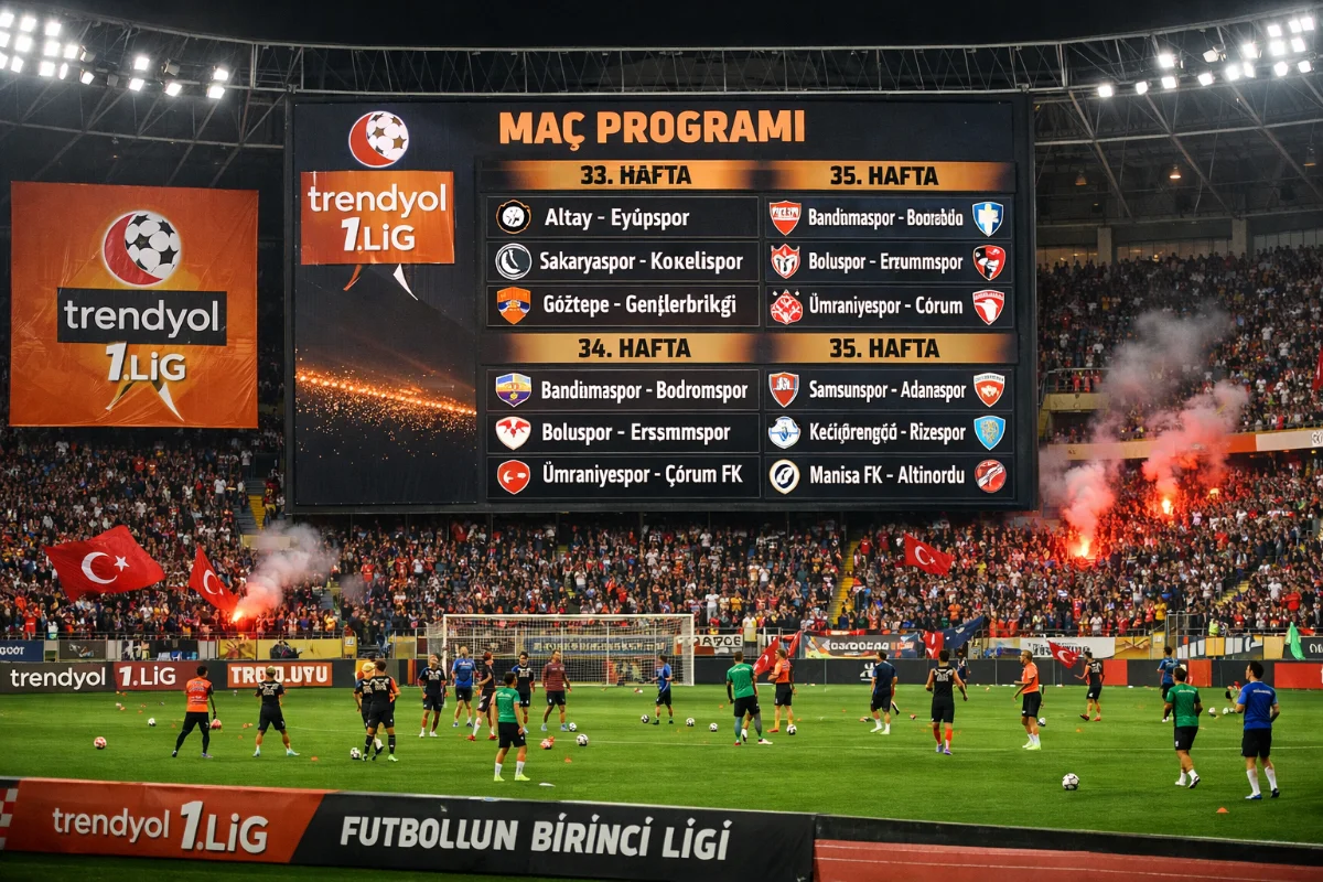 Türkiye Futbol Federasyonu, Trendyol 1. Lig’de 33, 34 ve 35. hafta maçlarının programını açıkladı. Futbolseverler, bu kritik karşılaşmalara hazır olmalı.